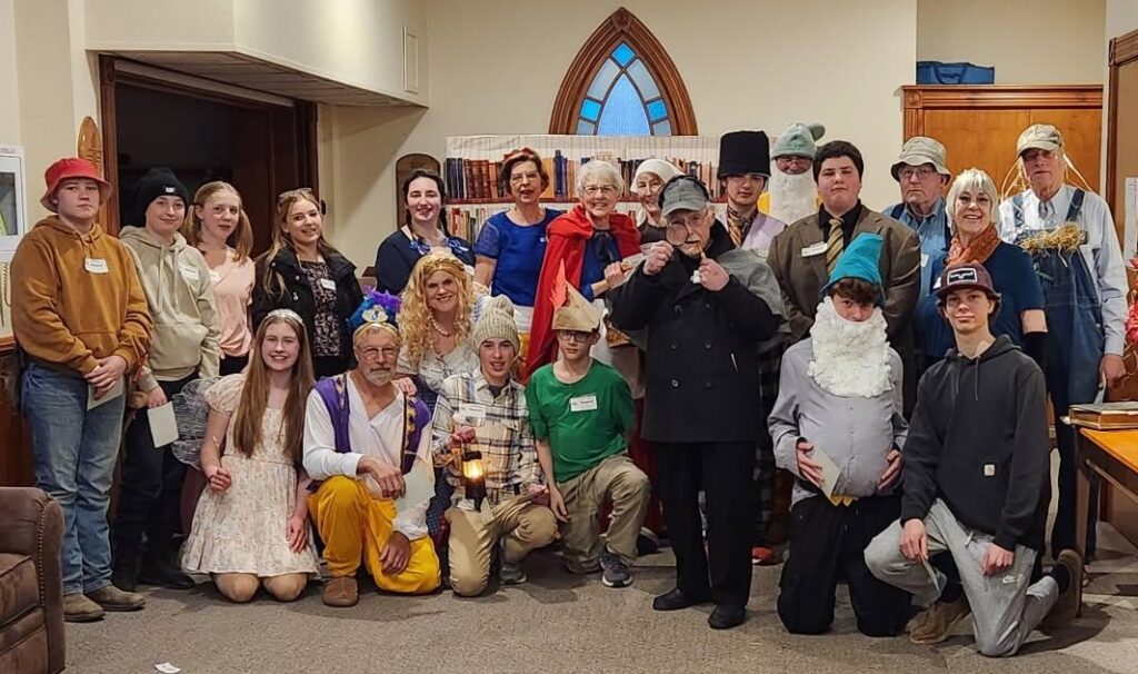 Bonnie Kassen has been using Merri Mysteries for a number of years for her events. This time her Church group decided to use “Who Stole The Cookies?” The photo shows how well they dressed for the event. You may recognise characters like Little Red Riding Hood, Aladdin, Sherlock Holmes and so on.